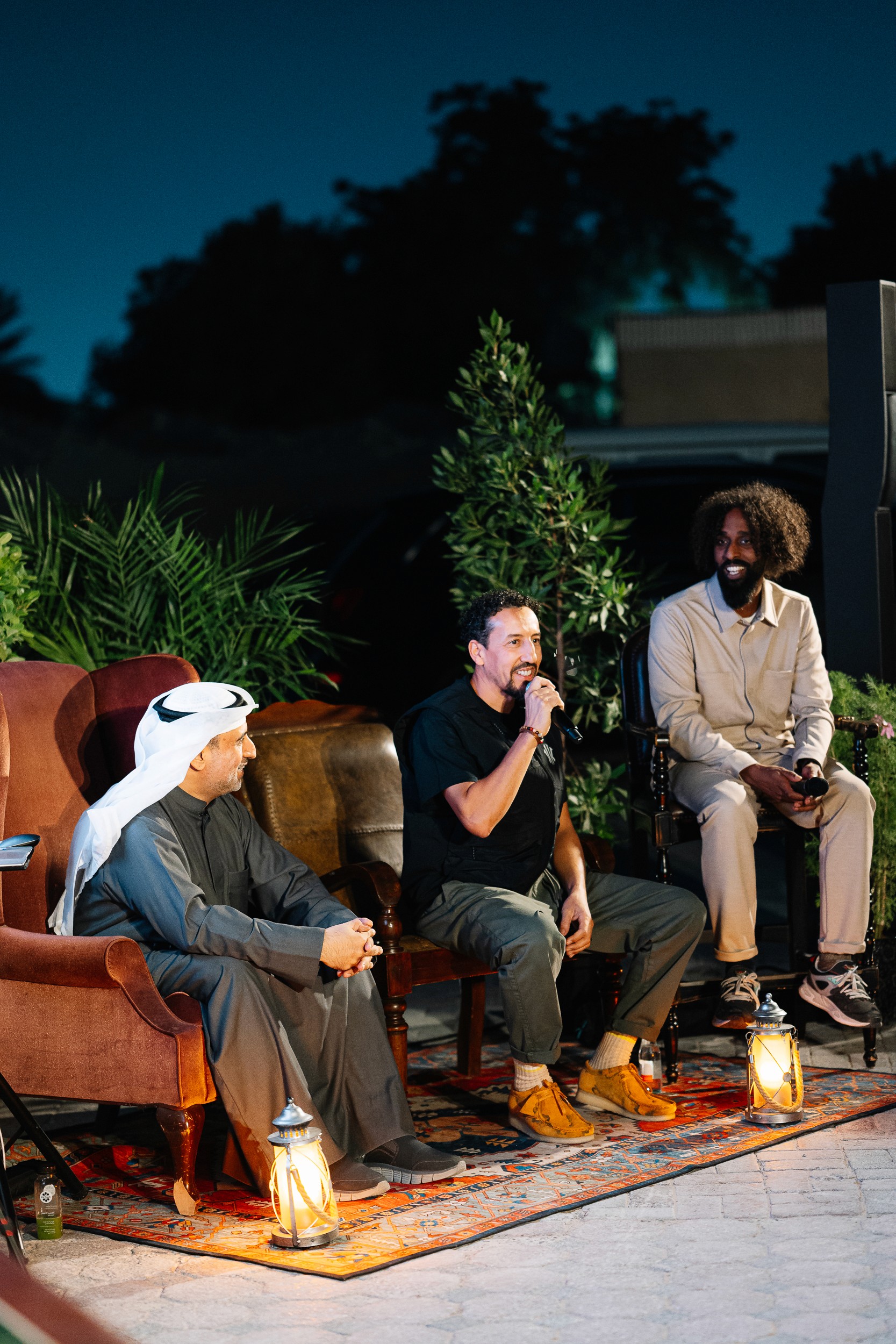 This exhibition unfolded in several stages, starting with a city intervention where artists KARIM JABBARI and KHALIL ABDULWAHID explored the vibrant Al Satwa neighborhood of Dubai. It continued with an outdoor performance in the industrial Al Quoz area, where we transformed a construction site into a warm, welcoming space that reflected the urban spirit of Karim’s vision. After the performance, Inloco Gallery opened its doors to showcase Karim’s personal exhibition of photography and calligraphy. Many works resonated with visitors, with several sold on the opening night.